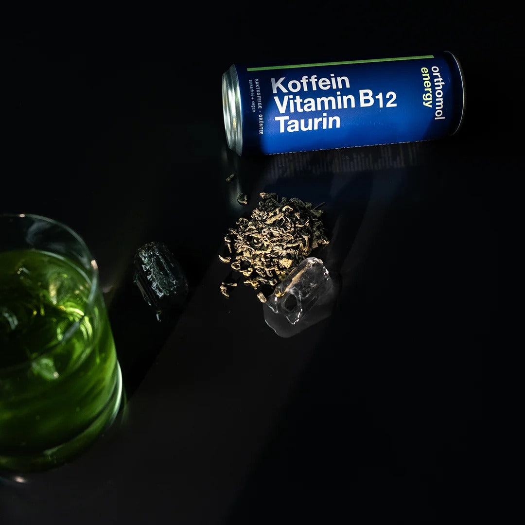 Koffein- und taurinhaltiges Erfrischungsgetränk mit hochdosiertem Vitamin B12 und wichtigen Aminosäuren